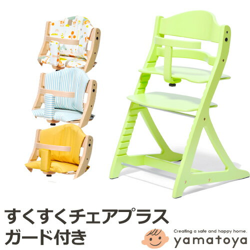 ベビーチェア 大和屋 すくすくチェアプラス ガード付 クッション付き 1001NA 1002LB 1003DB 1004GR 1005WH 1006RD 木製ハイチェア ヤマトヤ yamatoya 高さ調節 sukusuku+ すくすくプラス