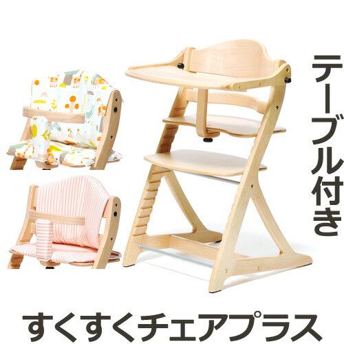 ベビーチェア 大和屋 すくすくチェアプラス+クッション テーブル付 1501NA 1502LB 1503DB 1504GR 1505WH 1506RD 木製ハイチェア ヤマトヤ yamatoya 高さ調節 すくすくプラスチェア