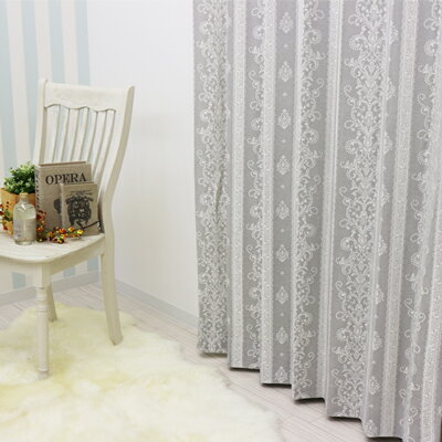 Grayグレー淡いブルーのような色味があり、刺繍の光沢が美しい上品なカーテンです♪